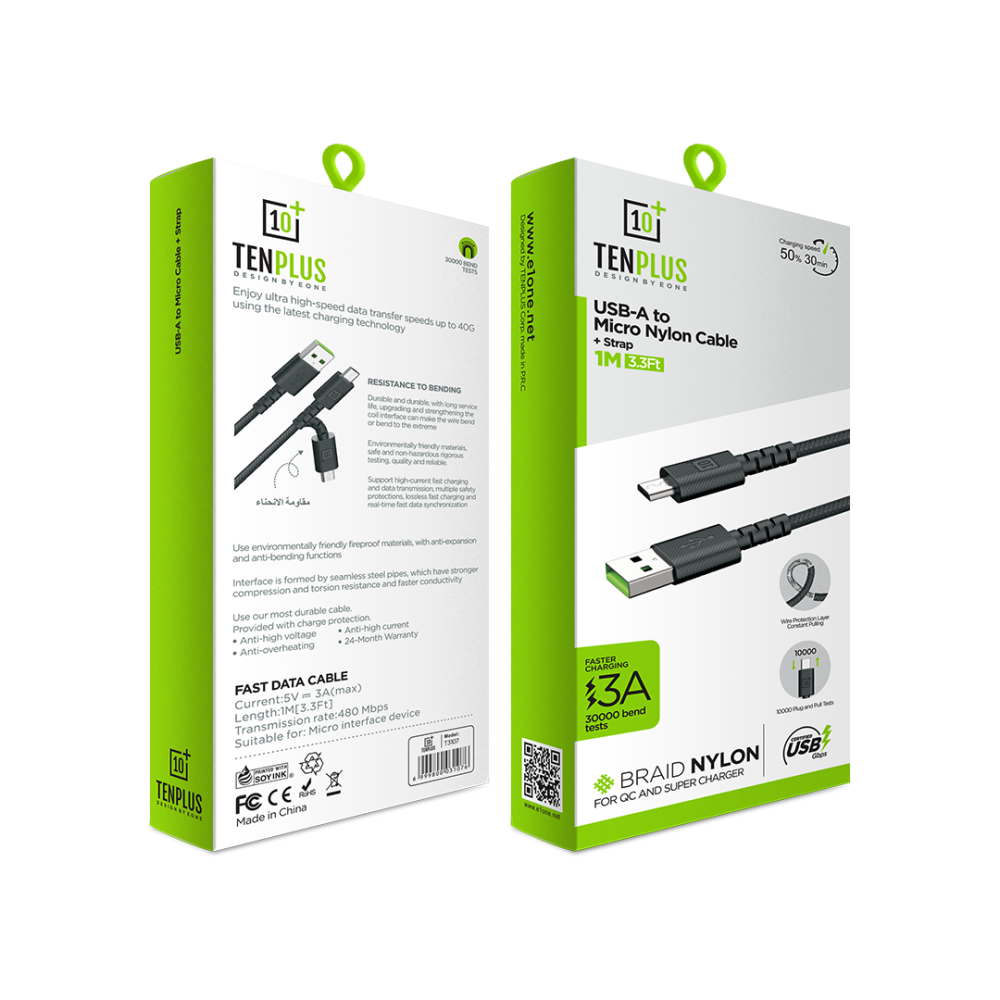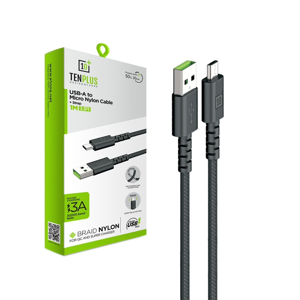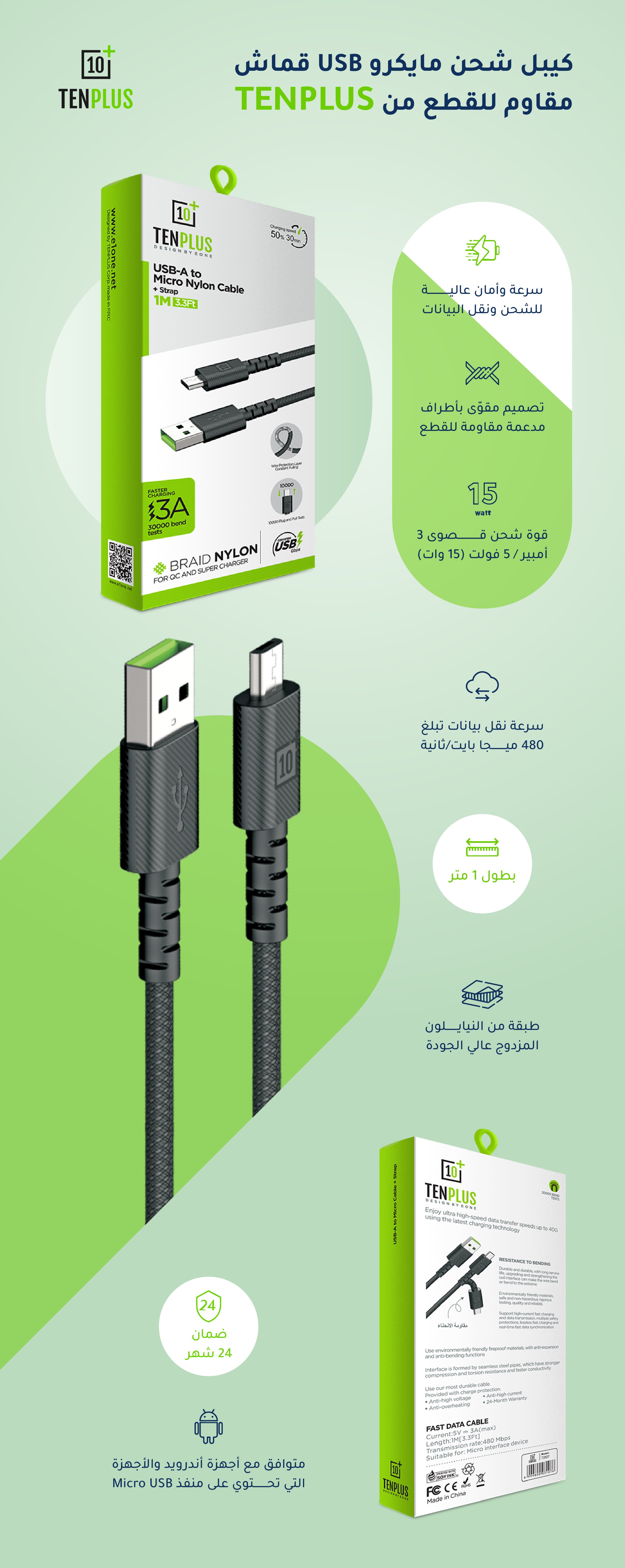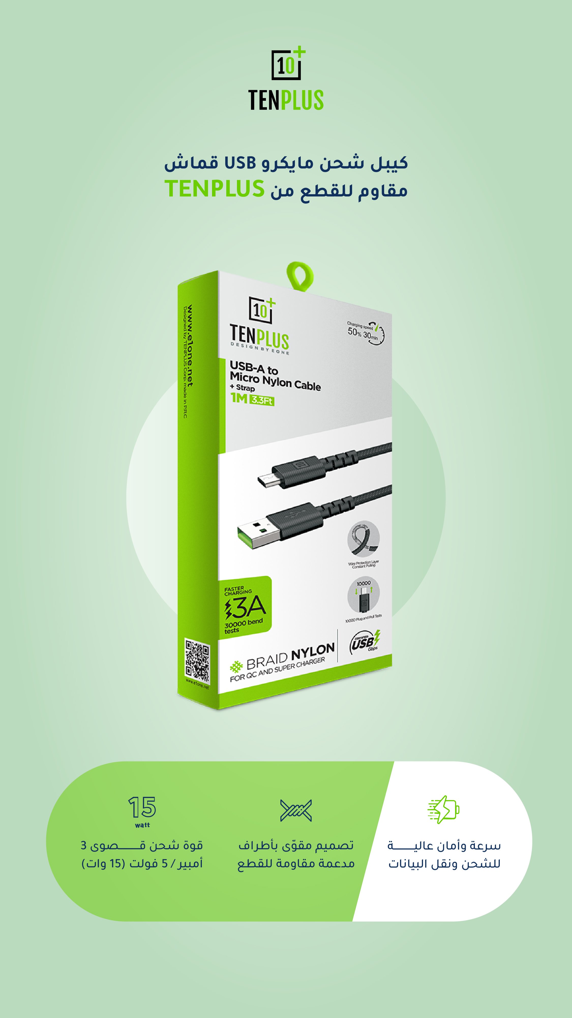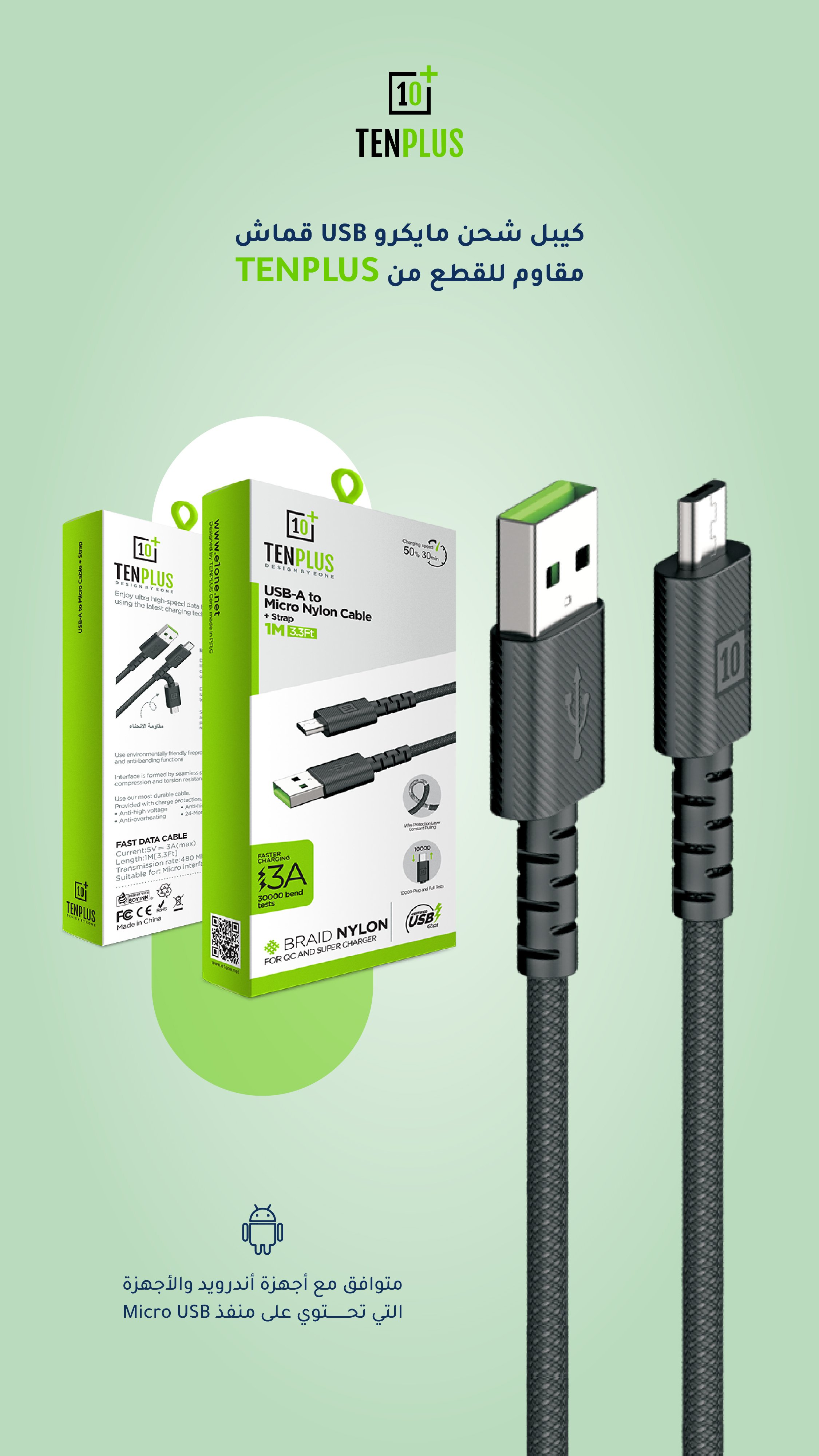 كيبل شحن مايكرو USB قماش مقاوم للقطع من TENPLUS