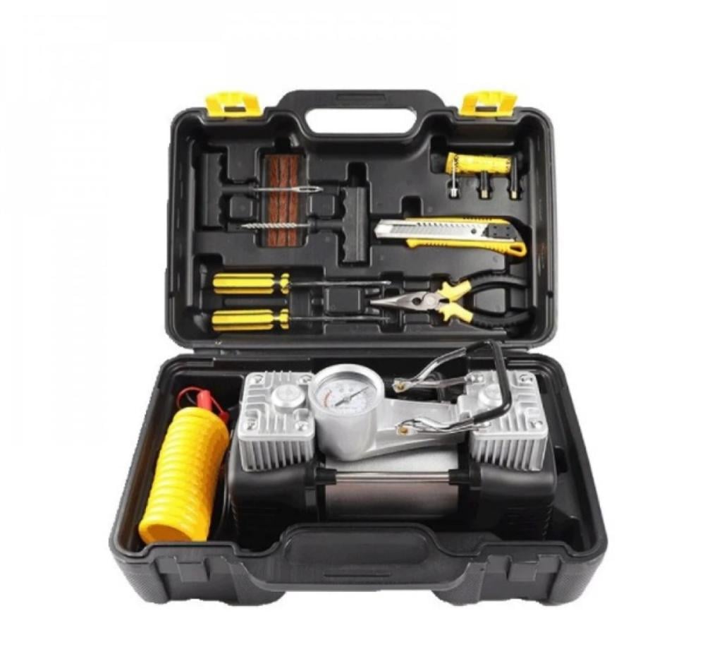 منفاخ ابو جمل 2 بستم هو رفيقك المثالي في كل طلعة أو سفر. يعطيك قوة ضخ عالية وسرعة تعبئة ممتازة للإطارات، ويجي مع طقم أدوات متكامل في شنطة منظمة، جاهز لأي طارئ.