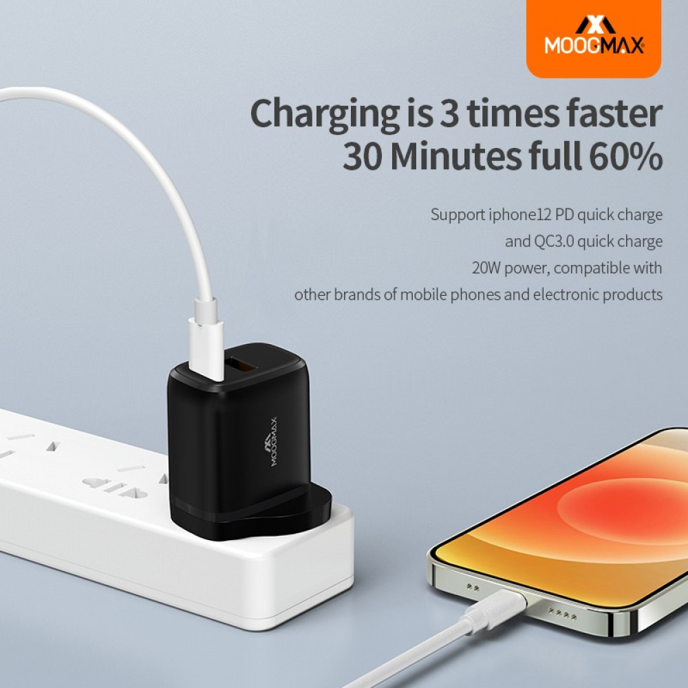 فيش جداري موج ماكس PD + QC3 بقوة 20 واط اسود MOOGMAX MX21-متجر الدانة
