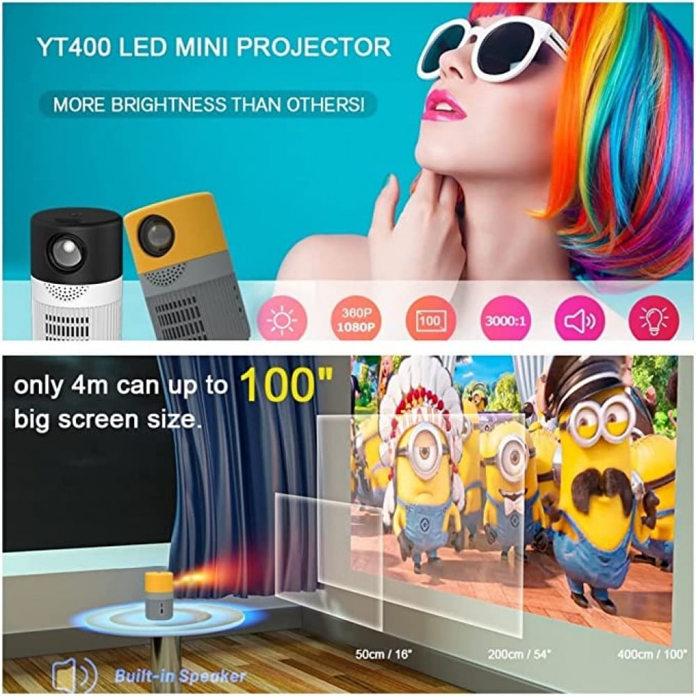 [السطوع] جهاز العرض LED لديه عمر مصباح يصل إلى 30000 ساعة، والذي يأتي مع دقة أصلية 480 × 360 بكسل والتي يمكن أن تدعم بدقة عالية 1920 × 1080 ، يمكنك الاستمتاع بشاشة سينما دون ترك المنزل والدقة المدعمة 1920 × 1080