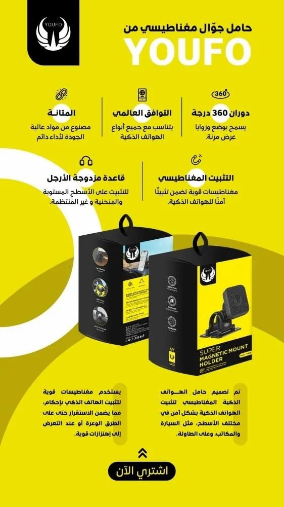 حامل جوال مغناطيسي من يوفو Y4835 هو الحل الأمثل للحفاظ على هاتفك في مكانه الآمن أثناء القيادة أو العمل أو أي مكان آخر. يتميز الحامل بمغناطيسات قوية تثبت الهاتف بإحكام، حتى في حالة السير على الطرق الوعرة أو تعرض الهاتف لصدمات.