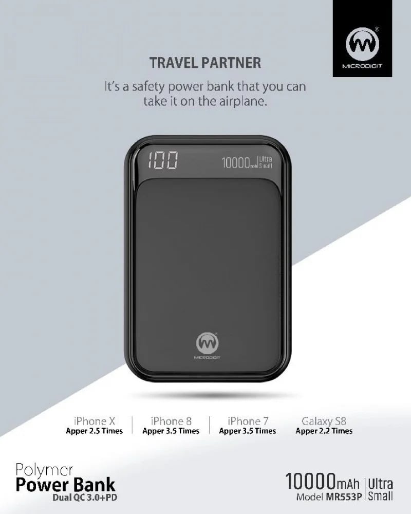 كم مرة واجهت مشكلة بطارية جوالك تخلص وأنت برّا البيت؟ أو كنت محتاج شاحن سريع وما لقيت؟ باور بنك 10000 مصمم ليكون الحل المثالي بتصميم نحيف يناسب جيبك وين ما كنت.