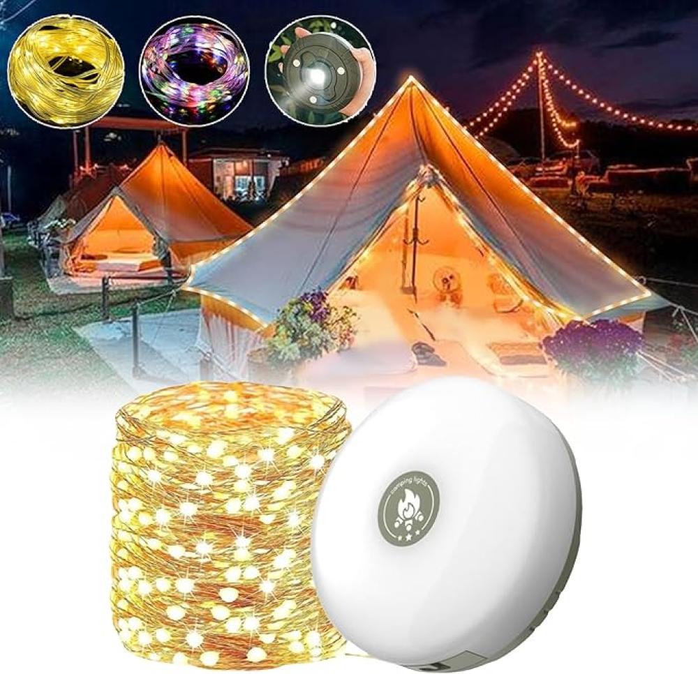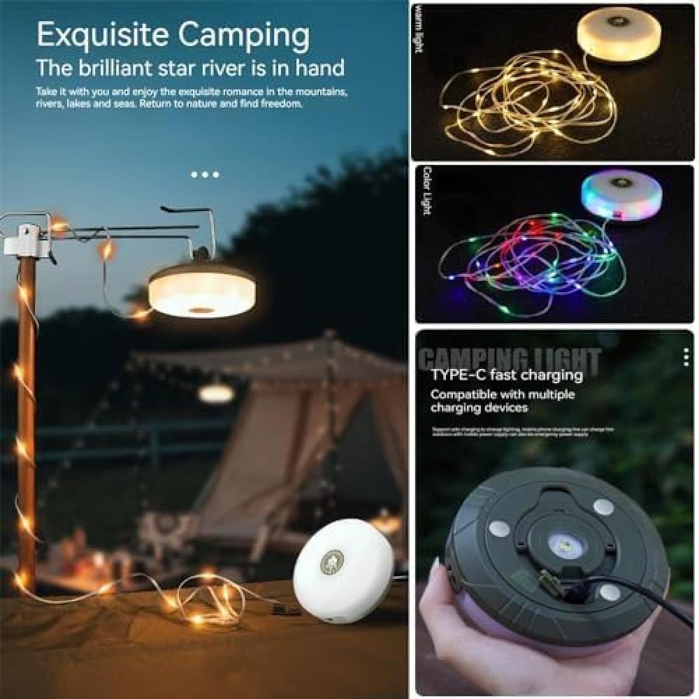 مصباح تخييم خارجي مطور 3 في 1 من كلير هيل مع سلسلة مصابيح قابلة للطي - 32.8 قدم/10 متر ابيض دافئ وملون، 8 اوضاع اضاءة، مقاوم للماء، قابل لاعادة الشحن