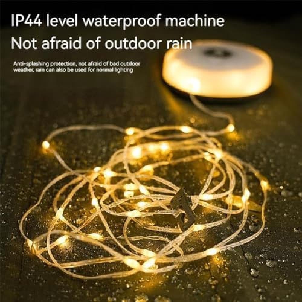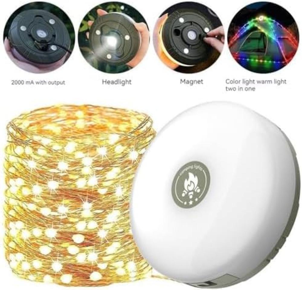 إضاءة متعددة الوظائف: يأتي الكشاف بلمبات عقد توفر إضاءة دافئة وملونة (RGB) بطول 10 أمتار، مما يجعله مثاليًا لتوفير إضاءة محيطة في الخيام، التخييم، الحفلات، وحتى أثناء الرحلات.
