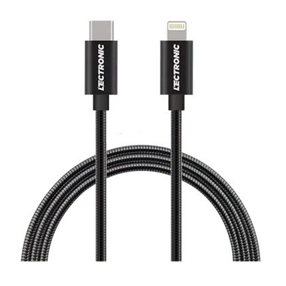 ليكترونيك كيبل شحن معدني نوع C إلى لايتنينج، معتمد من آبل، أسود1 m 1m LECTRONIC METAL, CHARGING CABLE, TYPE C TO LIGHTNING, MFI, BLACK-متجر الدانة